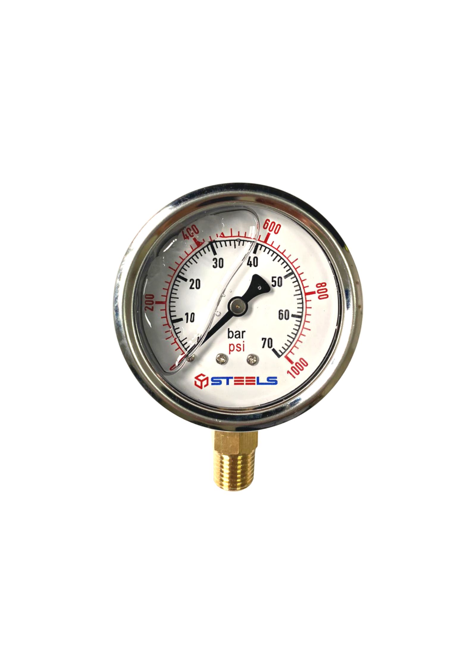 Manômetro com glicerina 100PSI - Saída vertical